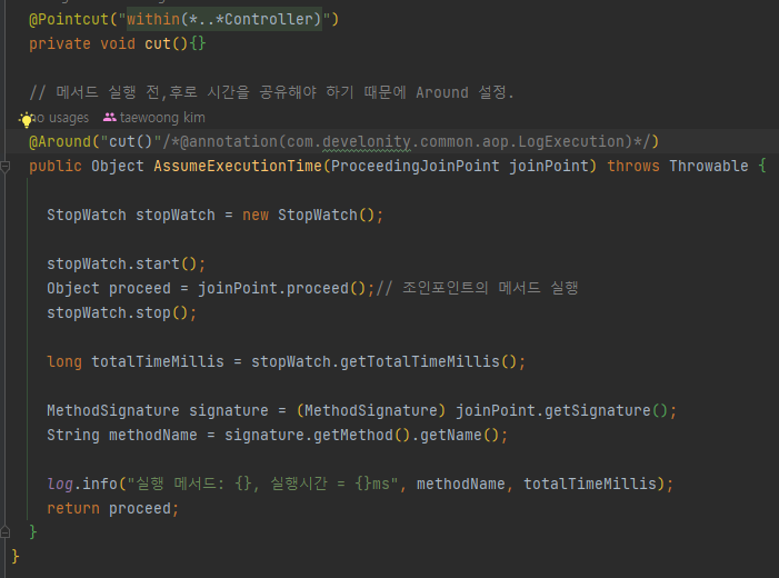 AOP 활용하여 컨트롤러 메소드 실행시간 측정 본문