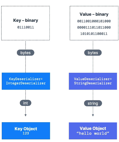 - 프로듀서가 직렬화한 키, 밸류 값을 다시 역직렬화 해야함